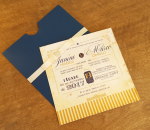 Convite Moderno - O seu casamento vai ser diferenciado, temático, com cerimônia e festa alternativas. Neste tipo de convite, os noivos podem escolher envelopes coloridos, imagens, caricaturas, fotos especiais. Nada está proibido, o que manda é a imaginação e o gosto do casal.