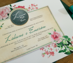Convite Rústico – Ideal para as festas ao ar livre e que primam pelo contato com a natureza, os convites rústicos seguem um padrão de tons terrosos, papel kraft e estampas florais. Mesmo nestes modelos é possível dar um toque de sofisticação acrescentando uma fita dourada, por exemplo.
