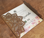 Convite Rústico – Ideal para as festas ao ar livre e que primam pelo contato com a natureza, os convites rústicos seguem um padrão de tons terrosos, papel kraft e estampas florais. Mesmo nestes modelos é possível dar um toque de sofisticação acrescentando uma fita dourada, por exemplo.
