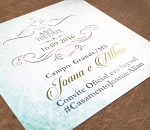 Convite em papel Aspen 250 gr. no tamanho 10 x10 cm.
