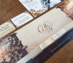 Acabamento com o laço opcional.  Lista de presente e inserção de nomes (não está incluso no convite). Valor sob consulta. Não incluso no convite.