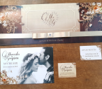 Convite modelo Rústico – Ideal para as festas ao ar livre e que primam pelo contato com a natureza, os convites rústicos seguem um padrão de tons terrosos, papel kraft e estampas  florais. Mesmo nestes modelos é possível dar um toque de sofisticação acrescentando uma fita dourada, por exemplo.