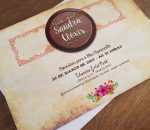 Convite Rústico – Ideal para as festas ao ar livre e que primam pelo contato com a natureza, os convites rústicos seguem um padrão de tons terrosos, papel kraft e estampas florais. Mesmo nestes modelos é possível dar um toque de sofisticação acrescentando uma fita dourada, por exemplo.