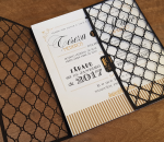 Convite Moderno - O seu casamento vai ser diferenciado, temático, com cerimônia e festa alternativas. Neste tipo de convite, os noivos podem escolher envelopes coloridos, imagens, caricaturas, fotos especiais. Nada está proibido, o que manda é a imaginação e o gosto do casal.